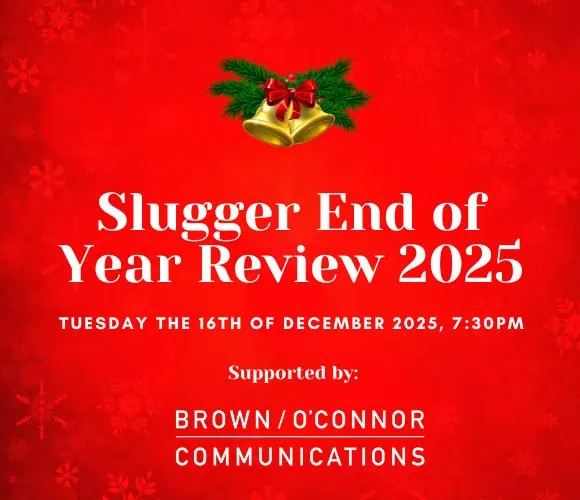 The Slugger End of Year Review will take place in the Black Box in Belfast on Tuesday the 16th of December at 7:30pm. This is a live in-person event.