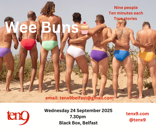 Tenx9 is a storytelling event where nine people have up to ten minutes each to tell a true story from their own life.