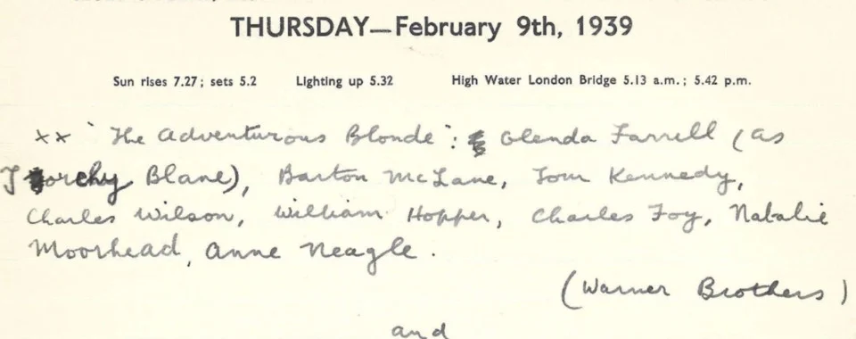 The diary provides a unique insight into the customs, preferences and opinions of a single cinema-goer at a time when a trip to the flicks was the most popular leisure activity. The diarist used their own rating system to log the 325 films they saw in 1939, with highly-rated films including Three Comrades and Too Hot to Handle.